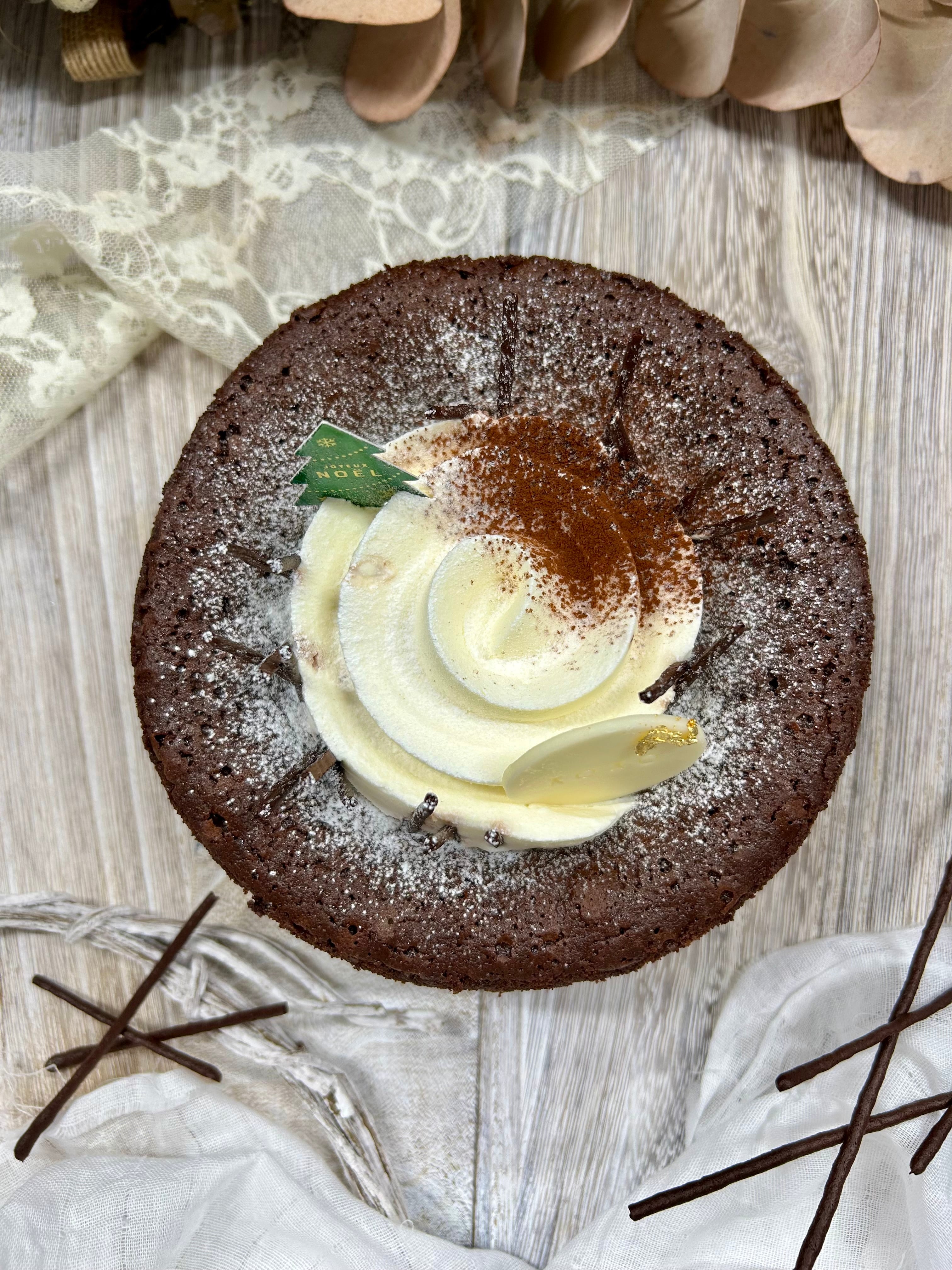 ずっしり濃厚なガトーショコラ、シンプルですが贅沢にベルギー産のチョコレートをたっぷり使用したケーキです。小麦粉不使用です。