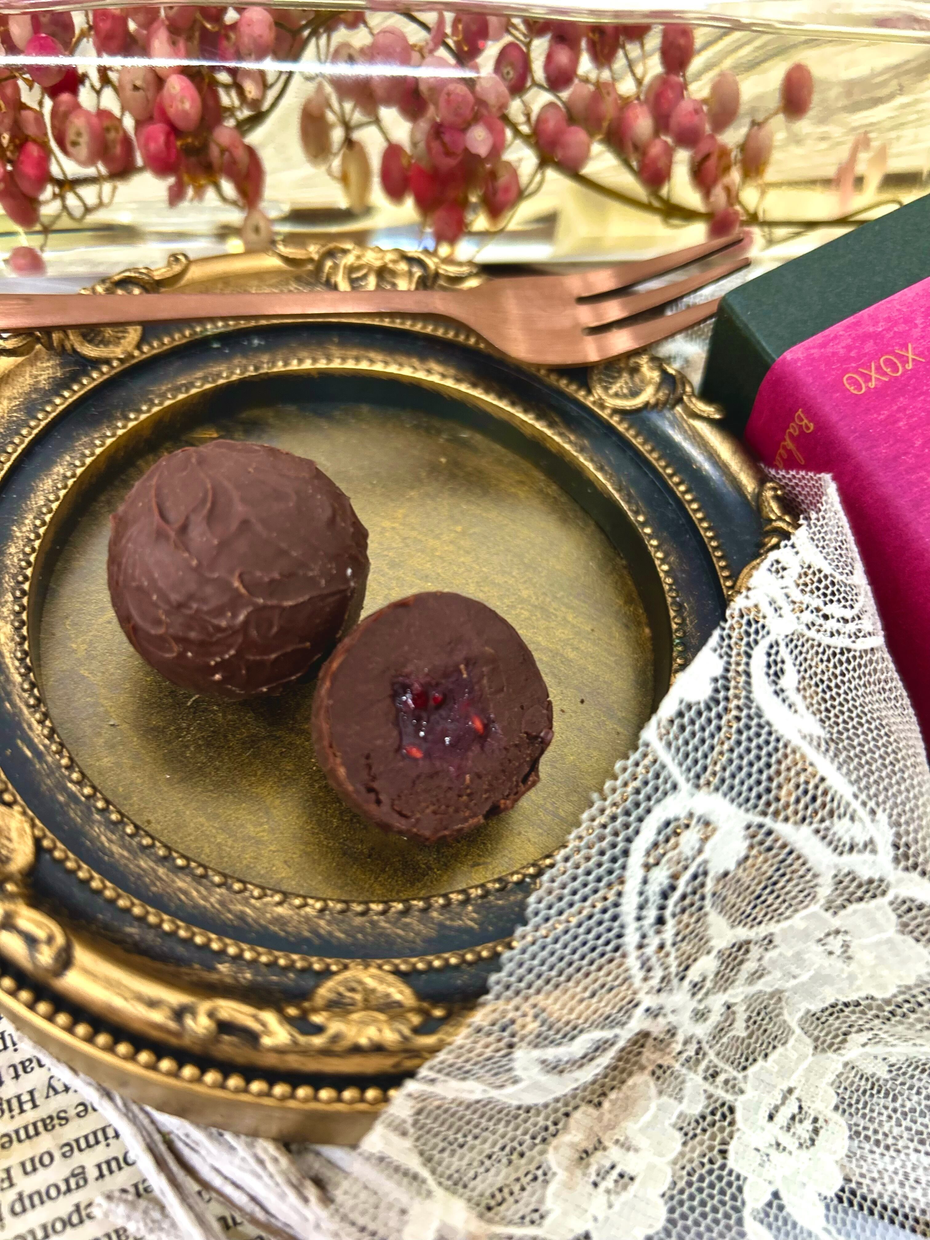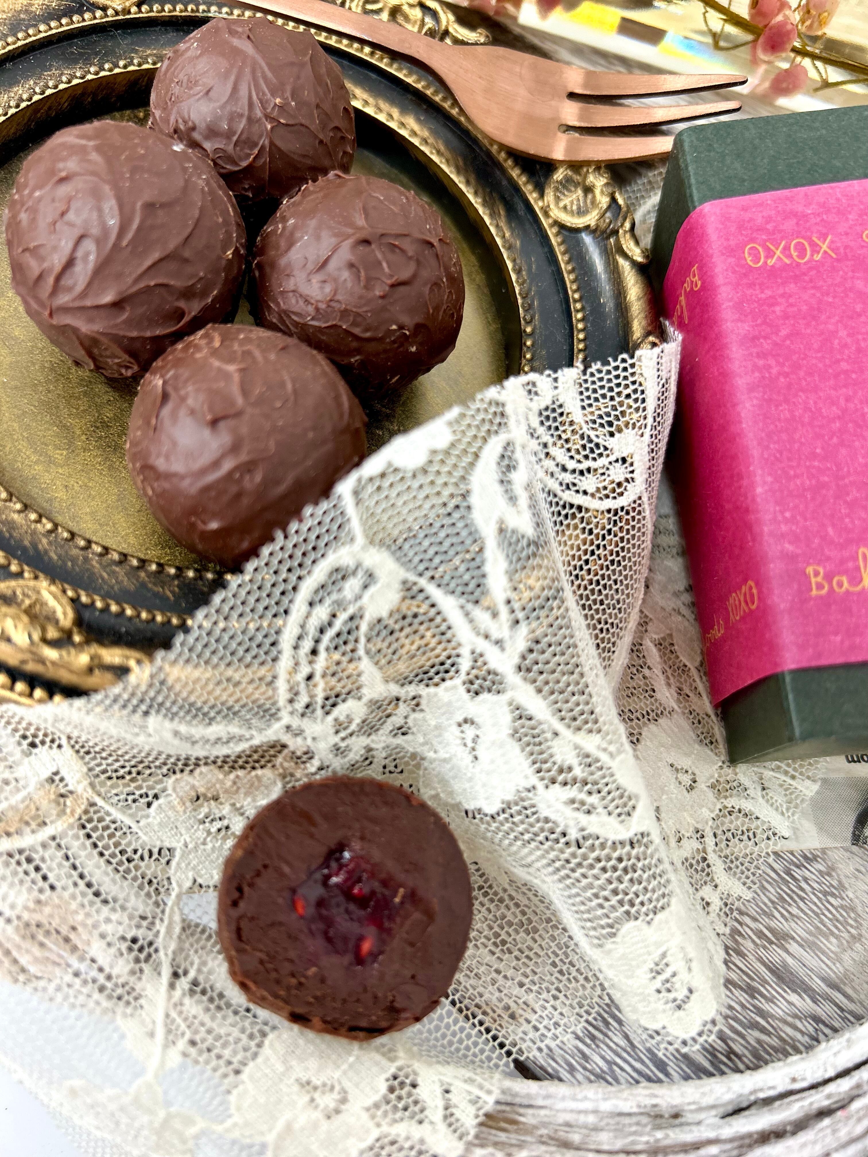 フランボワーズ(木苺)を使用した生チョコに、コクのあるジャムを包みました。