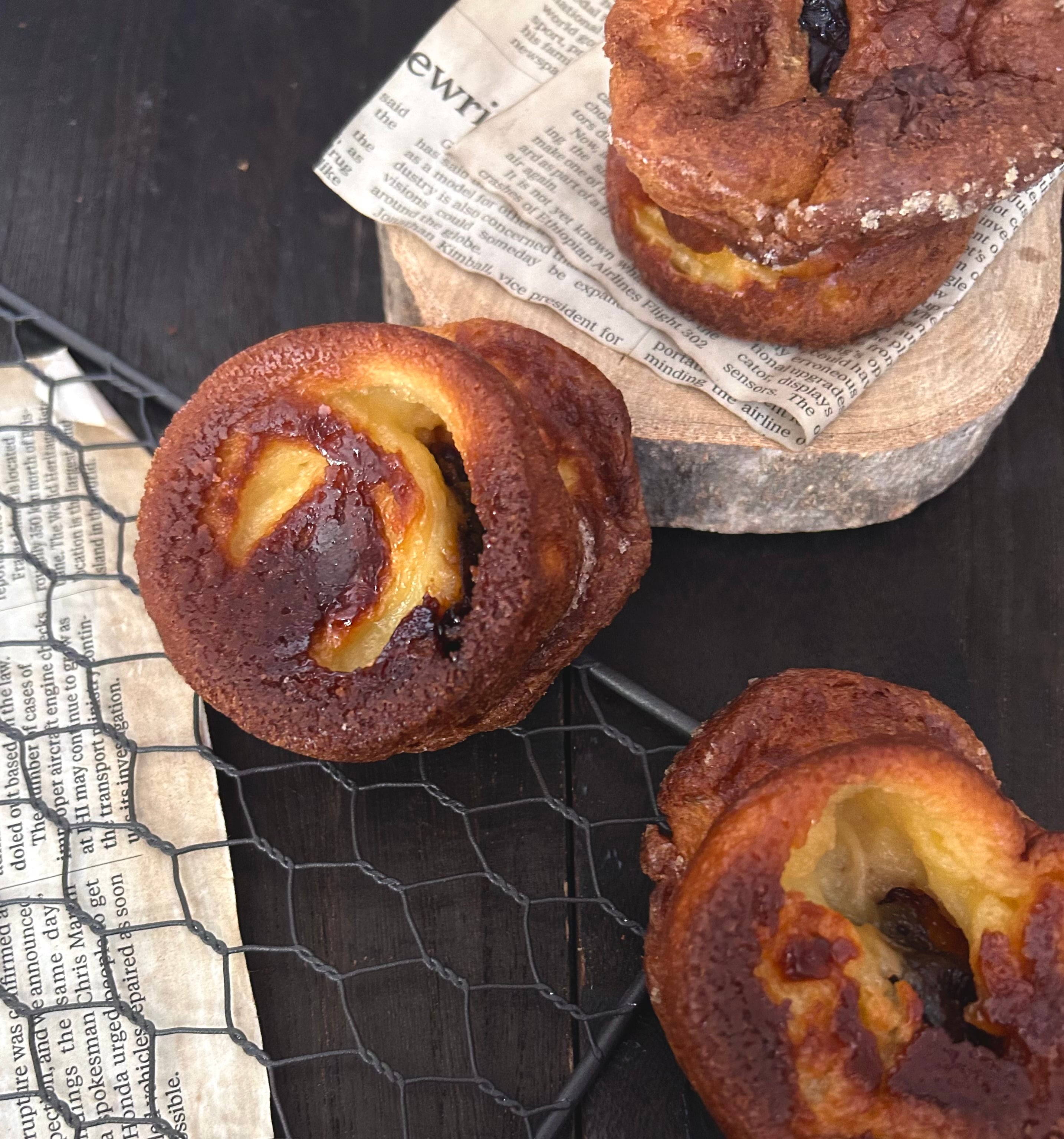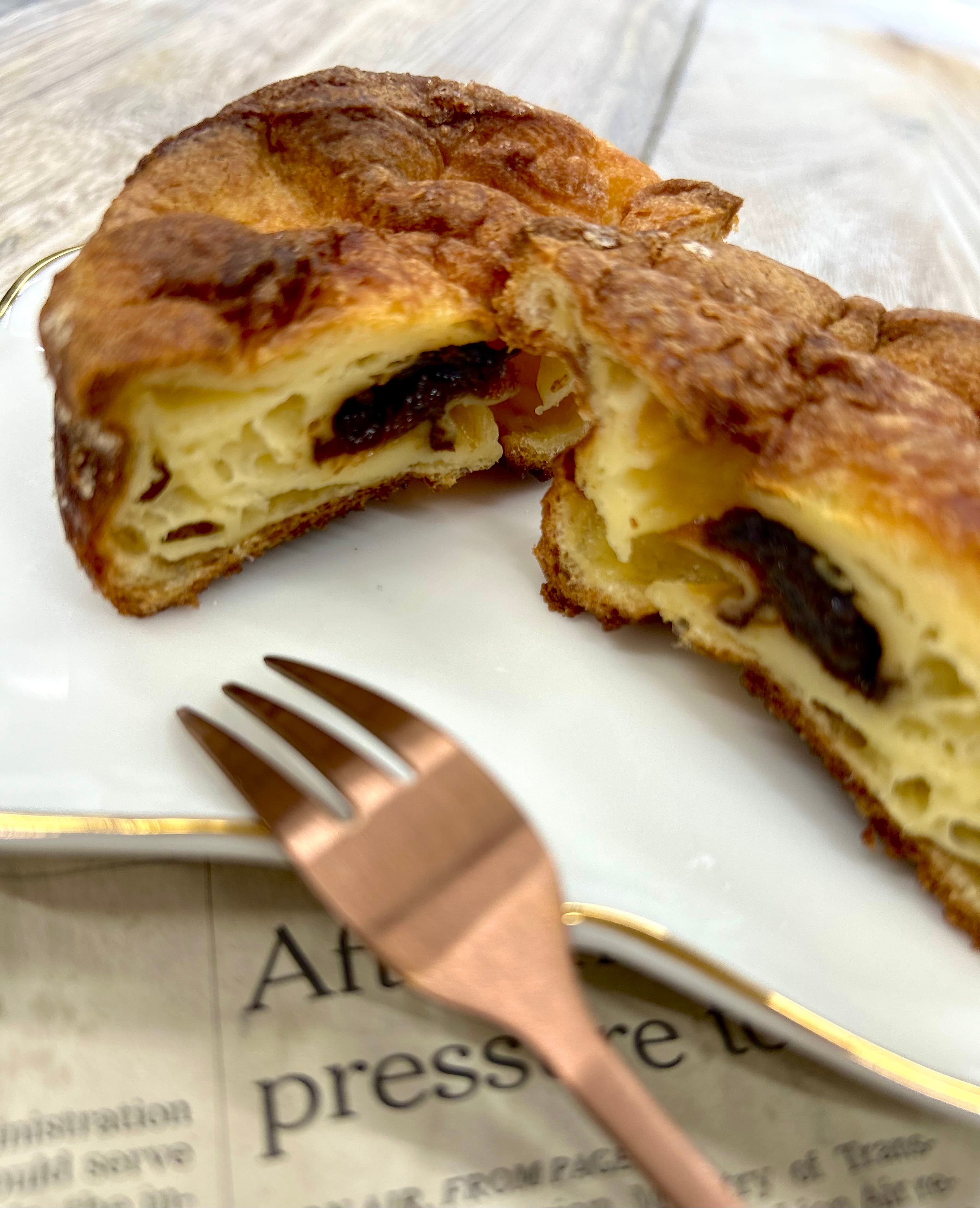 アクセントにラム酒で漬けたプルーンを焼き込んであります。