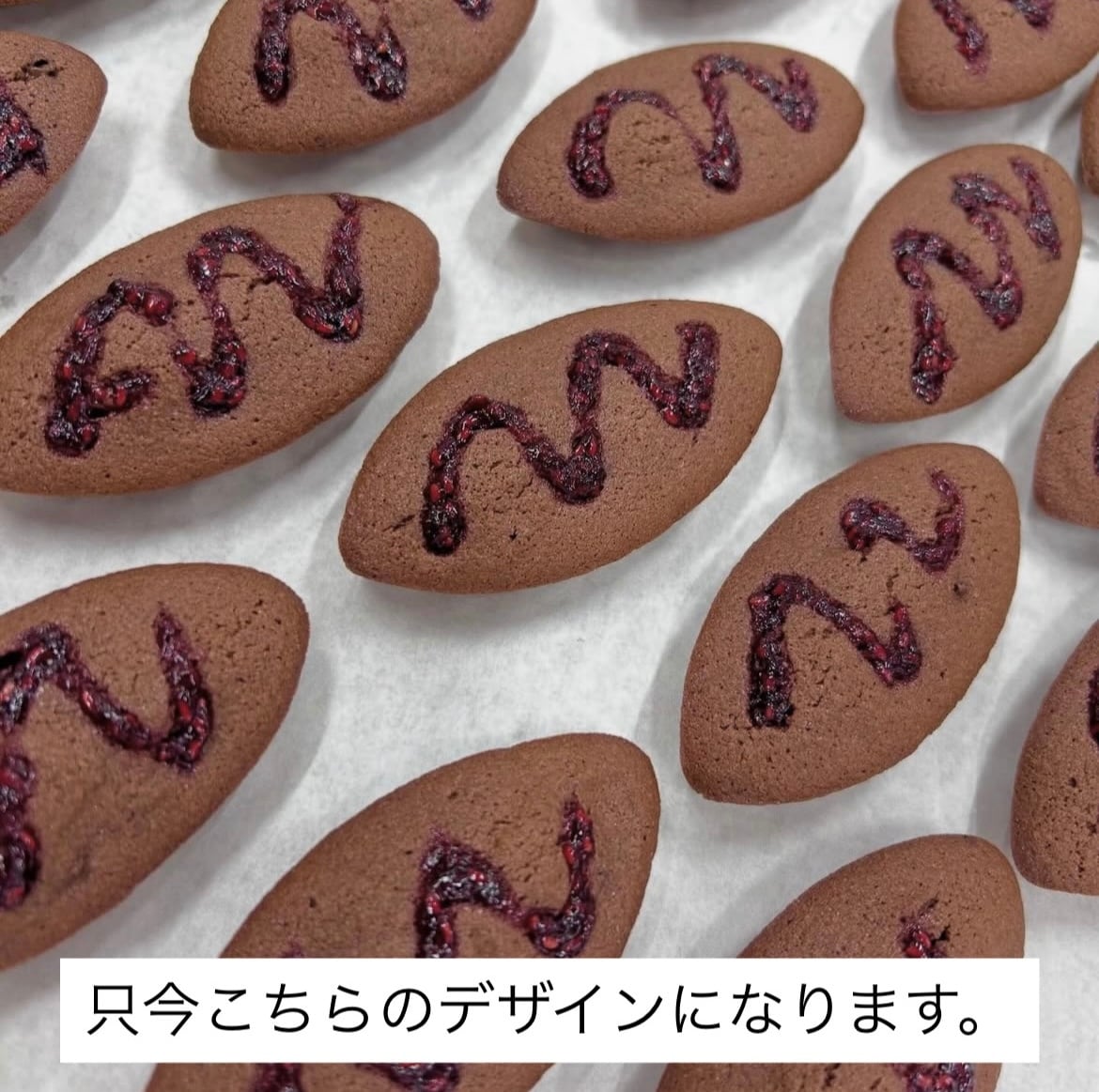 アクセントにラズベリージャムをのせ焼き上げました。